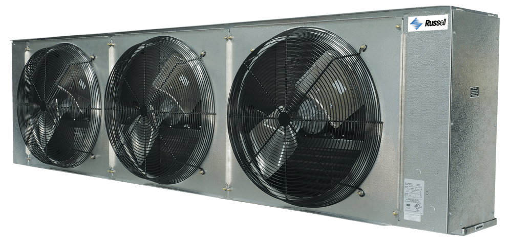 Russell’s Medium Profile Unit Coolers were engineered to meet the Department of Energy’s new Annual Walk-in Energy Factor (AWEF) performance regulations and are the perfect evaporator solution for medium to large walk-in coolers and freezers. The units feature rail-mount motors, high efficiency fan and venturi designs, enhanced surface coil tubing, easily removable fan guards and modular fan panels, face mounted defrost heaters, hinged drain pans and are optimized for multiple refrigerants. One, two and three fan models are available with air, electric or hot gas defrost.